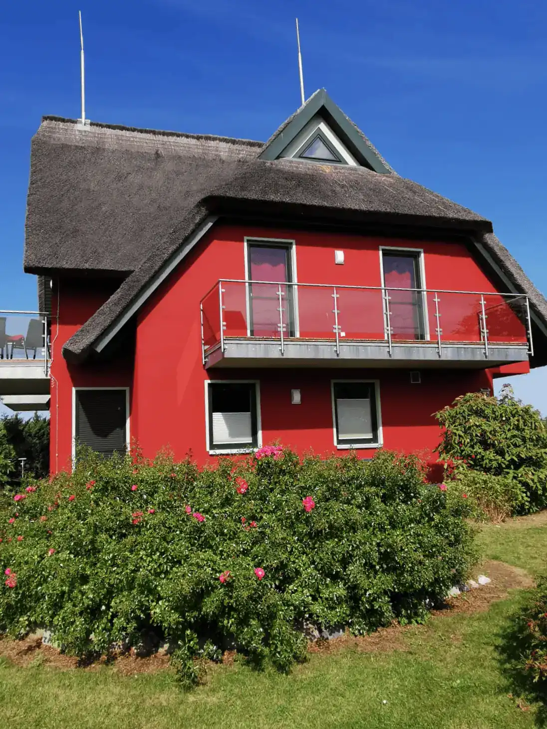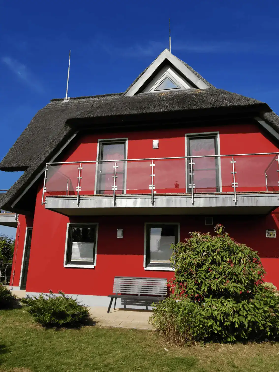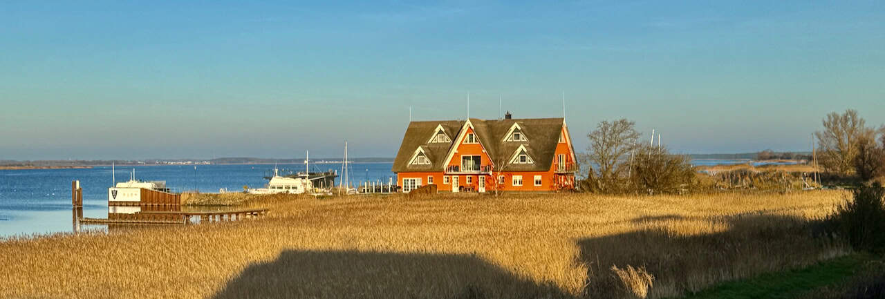 Traumhaftes reetgedecktes Ferienhaus in erster Reihe direkt am Wasser, mit freiem Blick über den Breetzer Bodden bis nach Hiddensee.