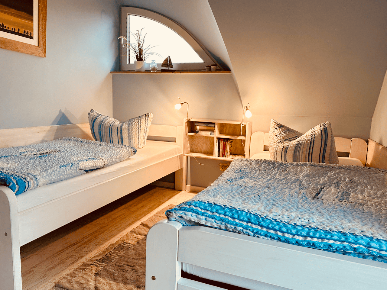 Das Ferienhaus Inselliebe liegt hervorragend ruhig in Hafendorf Vieregge, direkt am Breetzer Bodden. Der Bodden bieten ideale Möglichkeiten zum Baden und Angeln – eine Badestelle sowie Angelplätze sind nur ca. 150 m entfernt. Ebenfalls in unmittelbarer Nähe befinden sich der Yachthafen vom Hafendorf Vieregge mit Bistro, Brötchenservice und Anlegestelle der Weißen Flotte. Ein Kosmetikstudio mit Wellnessanwendungen sowie ein Kinderspielplatz sorgen für zusätzliche Entspannung und Abwechslung. Die Bushaltestelle erreichen Sie nach ca. 300 m. Einkaufsmöglichkeiten finden Sie im Tante-Emma-Laden in Neuenkirchen (ca. 3 km) sowie in Gingst mit weiteren Geschäften und Restaurants (ca. 12 km) und in Bergen (ca. 20 km).